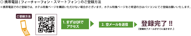 スマートフォンでのご登録では、ホテル特設ページを購読いただけない場合がございます。