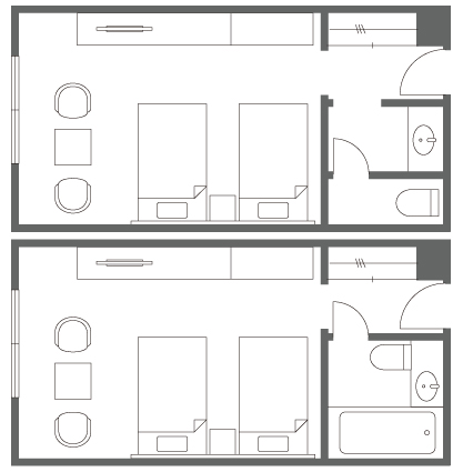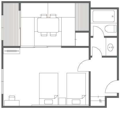 2階から4階にある、和室と同じ広さのお部屋です。3階・4階の洋室にはユニットバスが付いております。エキストラベットをお入れする事ができ、最大3名様までご利用頂けます。(エキストラベットをご利用には、追加料金が必要です。)足が不自由な方や、ご夫婦、カップルのお客様に、お勧めのお部屋です。