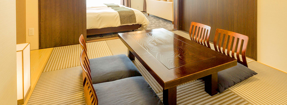 1階~5階までの奇数番号のお部屋が全て和室となっております。シンプルな造りと落ち着いた色合いが、和室ならではの和みを演出しごゆっくりおくつろぎ頂く事ができます。備え付けのご寝具はセルフサービスとなっておりますので、プライベートなお時間をご自分のペースでお過ごしくださいませ。隣の洋室とのコネクティングが可能です。