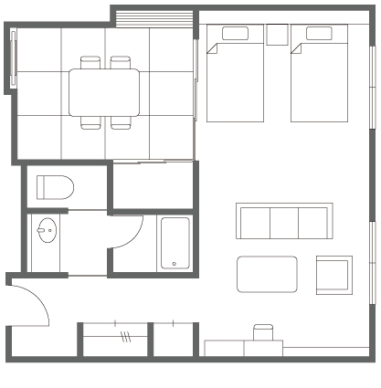 | 面積 | 27m2+6畳 | ベッド幅 | 110㎝ |