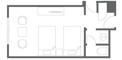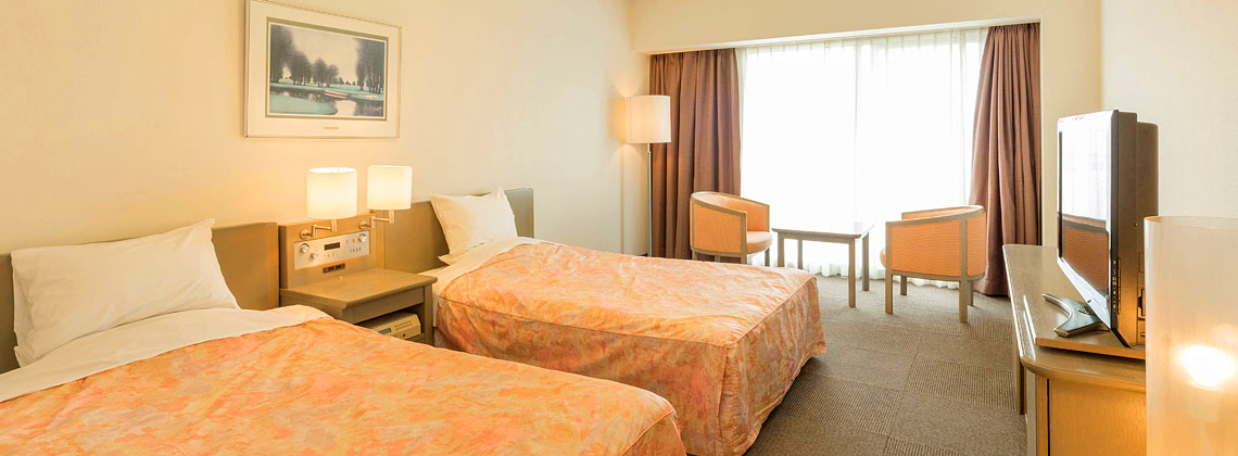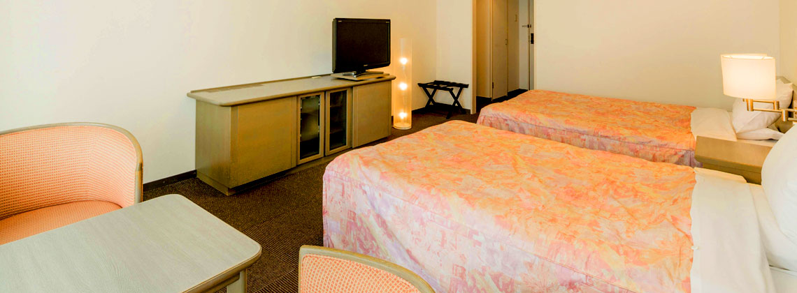 1階~5階までの偶数番号のお部屋が全て洋室となっております。ほとんどのお部屋がツインタイプとなっておりますが、各フロアーに1部屋ずつ、エキストラベッド1台対応可能なお部屋がございます。隣の和室とのコネクティングが可能です。(但し、エキストラベッド対応可能部屋はコネクティング不可となっております。)