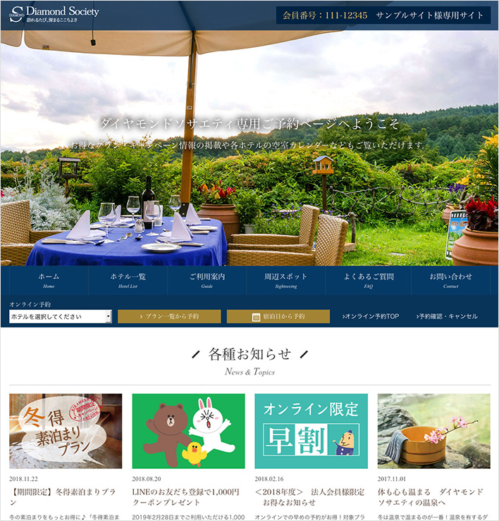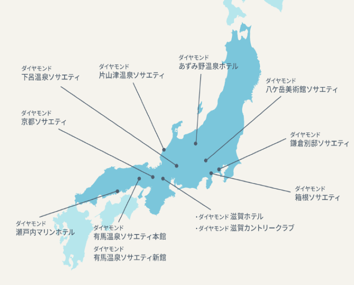 全国に10施設の会員制リゾートホテルと、ゴルフ場を運営するダイヤモンドソサエティ。良質な温泉や広大なコースを誇るカントリークラブなど、多くの会員様からのご好評を博しております。「訪れるたび、深まるここちよさ」をコンセプトに、第2の我が家のようなおもてなしをご提供。この度、従業員の皆さまがより利用しやすい新商品をご用意いたしました。 ※1室2名ご利用時の1名様料金/通常期全日4,500円からご利用できます。