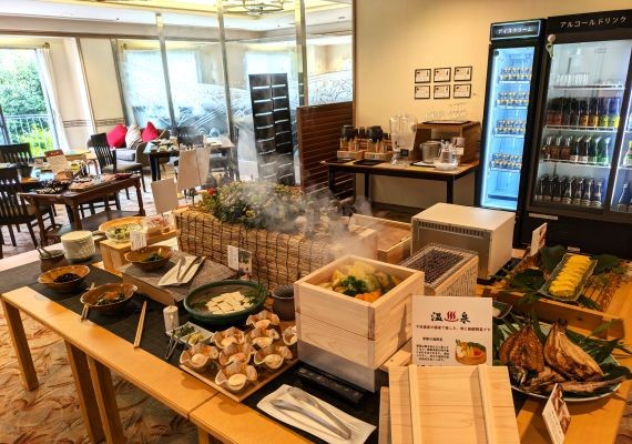 オーナーズラウンジ利用付パックでは、お菓子やディナー、朝食など、時間帯に応じた食事・ドリンクをお好きなだけお召し上がりいただけます。 飛騨の豊かな自然で育まれる飛騨牛や納豆喰豚(なっとくとん)など、飛騨の食材を豊富に使用した、からだに優しいお食事をご堪能ください。