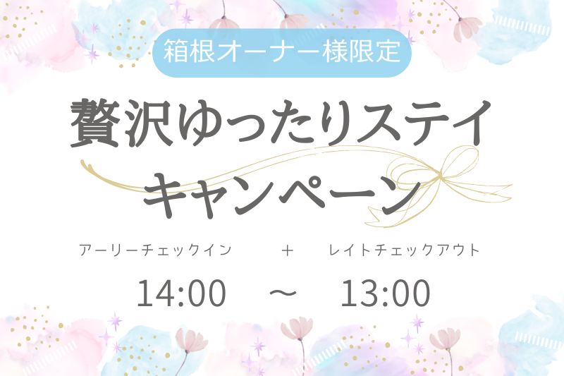 箱根ソサエティオーナー様限定!最大23時間滞在いただけます