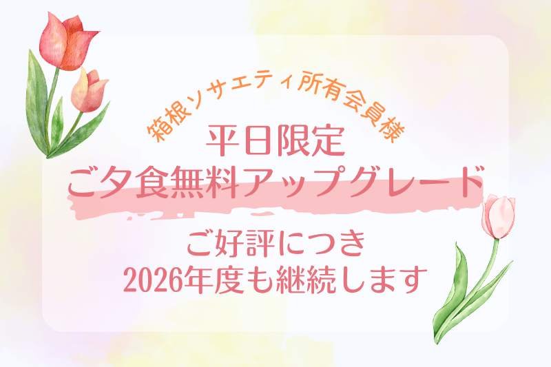 箱根オーナー様対象★ 平日限定 ご夕食無料アップグレード♪