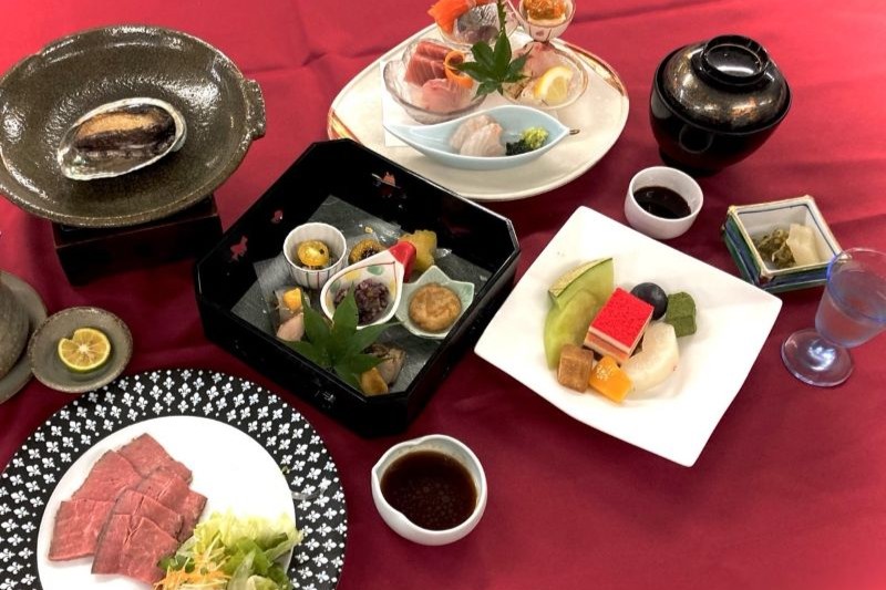 室料9,000円 + 3人目の追加室料3,000円 + 3名様分のご夕食38,100円 + 3名様分のご朝食6,900円 = 3名様合計 57,000円