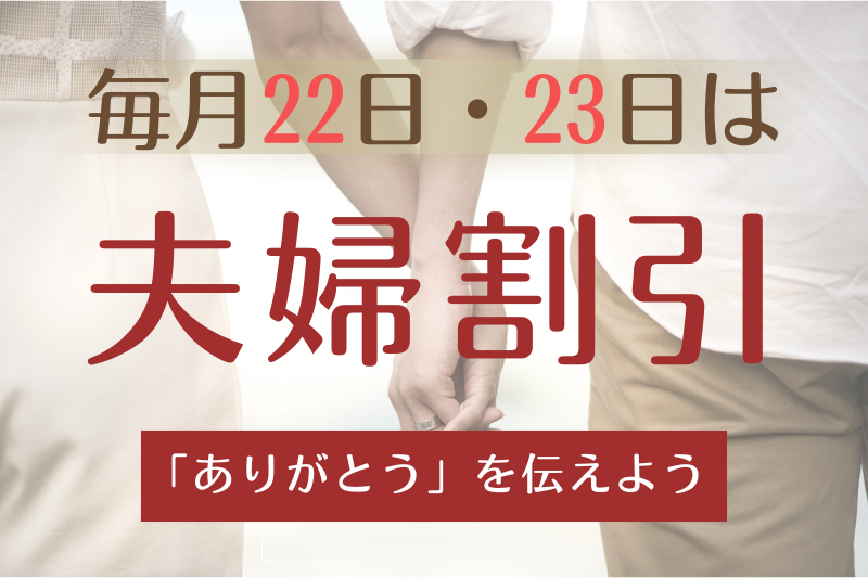 ご夫婦でご宿泊のお客様にお得な割引・特典をプレゼント!