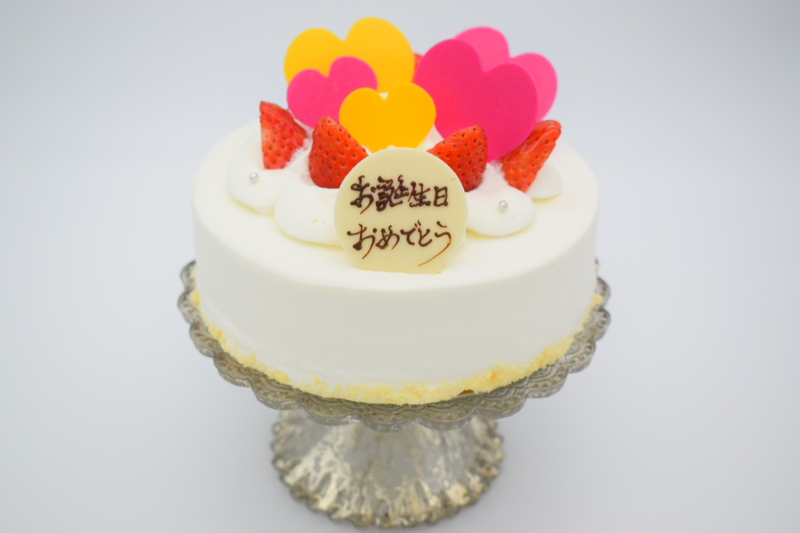 デコレーションケーキは京都の老舗和菓子店「鼓月」グループが手掛ける洋菓子店「KINEEL」より、生クリーム・生チョコレートの2種類から、デコレーションもハートとモザイクの2種類からお選びいただけます。
