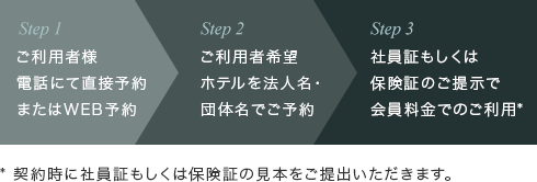施設を従業員様が利用される際、一般的には福利厚生のご担当者様にご利用申請が届き、ご担当者様からご予約手配などをされているケースが目立ちます。しかしダイヤモンドソサエティでは、法人会員専用サイトを介して、ご利用者ご本人様が直接ご予約していただけます。操作も非常に簡単ですので、これによって福利厚生ご担当者様のご負担は大幅に軽減されることと思います。