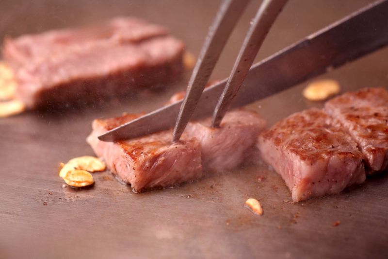 料理人が目の前で焼き上げる、カウンターイベントを思い起こさせるステーキです。