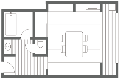 江戸間10畳の広さと板の間もあり、ゆったりとしたスペースでお寛ぎいただけます。お子様連れのご利用に最適です。