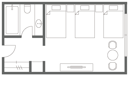 | 面積 | 36.1m2 | ベッド幅 | 160cm×1台,95cmx2台 |
