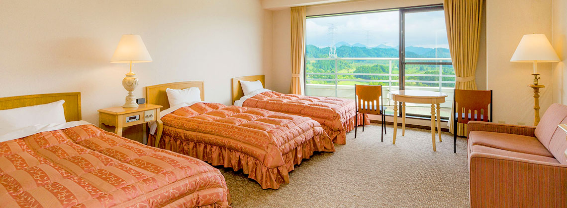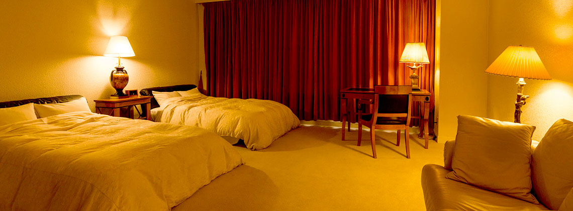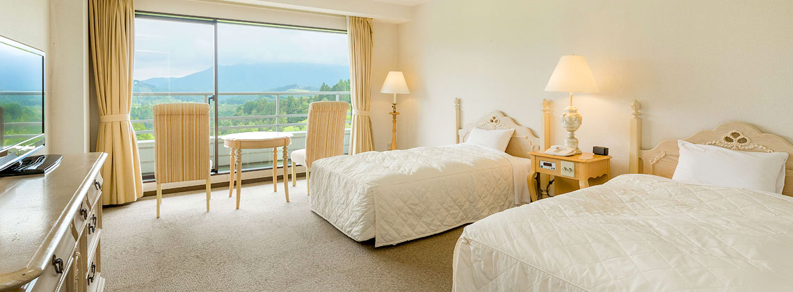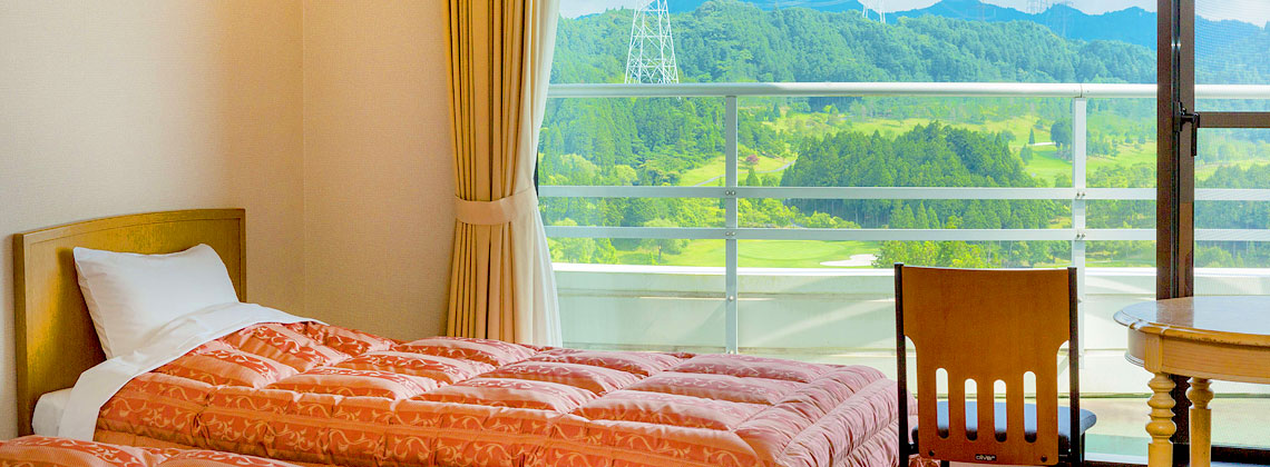 ベッド2台のお部屋です。当ホテルで最も多いタイプになります。ゴルフ場側に面しているお部屋は人気があります。